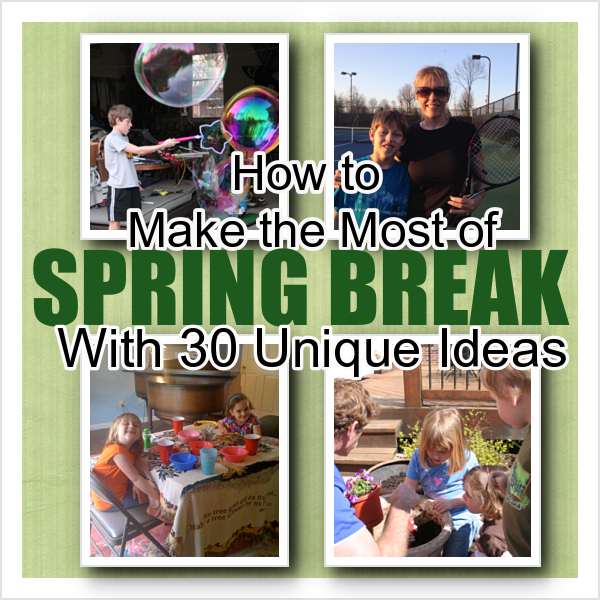 11. Do a unit study for a day. Homeschoolers are familiar with studying a subject from every angle (including literature, art, and field trips, for example). Take a day to study a subject of interest in depth. Here’s an example on snow–probably the last thing you want to study over spring break!