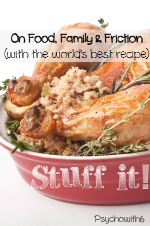 Because stuffing represents the holidays and holidays represent family and deep down we’re all still little kids who believe my-dad-is-bigger-than-your-dad and my-mom-cooks-better-than-your-mom and we’re willing to get a black eye to prove it.