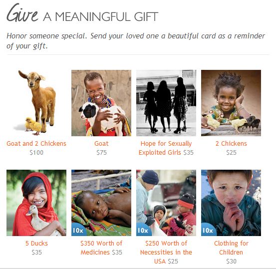 I once donated a box of my old shoes to a missionary who took them to a remote part of Africa. She sent pictures of elated women wearing the shoes I had carelessly thrown in a box. I cried and cried. Giving children the opportunity to give a gift to someone in need is a memorable gift. Even more powerful is to allow a child to get to know how his gift makes a difference. Sponsoring a child through World Vision (this is my friend, Deb Wolf’s sponsorship page) will allow a kid you love to see the impact of her gift.