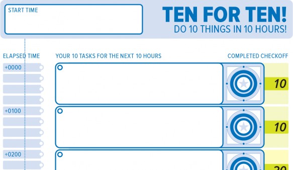 This week I tested whether David Seah’s Ten for Ten could help me get more done. I tried to complete ten tasks a day, earning as many points as possible. See the bottom of last week’s post for more details.