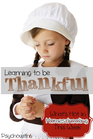 I just love Thanksgiving. Homeschoolers have been busy sharing fantastic ideas for teaching kids an attitude of gratitude–an attitude I could use a booster shot of myself. Here are a few links that have caught my eye this week: