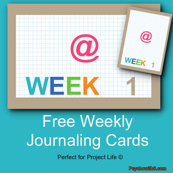 I kept having trouble remembering what week it was, so I added the dates to a new set of cards for this year. I kept the number on the left so these can be cut and used as a 3 x 4 or left as is for a 4 x 6 card. To download the full PDF file, subscribe below. You can also subscribe at this link. Once you have confirmed your subscription, you will receive a welcome email with the link to all the journaling cards and other Psychowith6 freebies. If you do not receive it, check your spam folder. Sometimes it takes a while for the email to arrive. Happy scrapping!